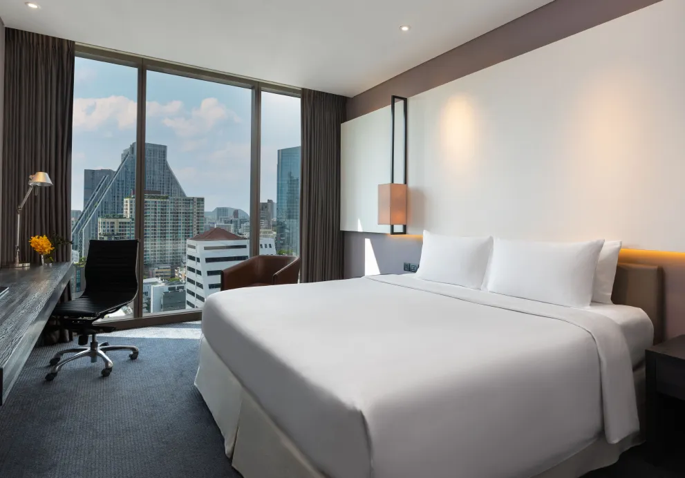 Das luxuriöse Amara Bangkok Hotel ist ein aufregendes Hotel mit 250 Zimmern, das einen spektakulären Blick auf die Skyline von Bangkok bietet. Es wird als die ultimative Wahl für Geschäftsreisende und Sightseeing-Fans gepriesen.