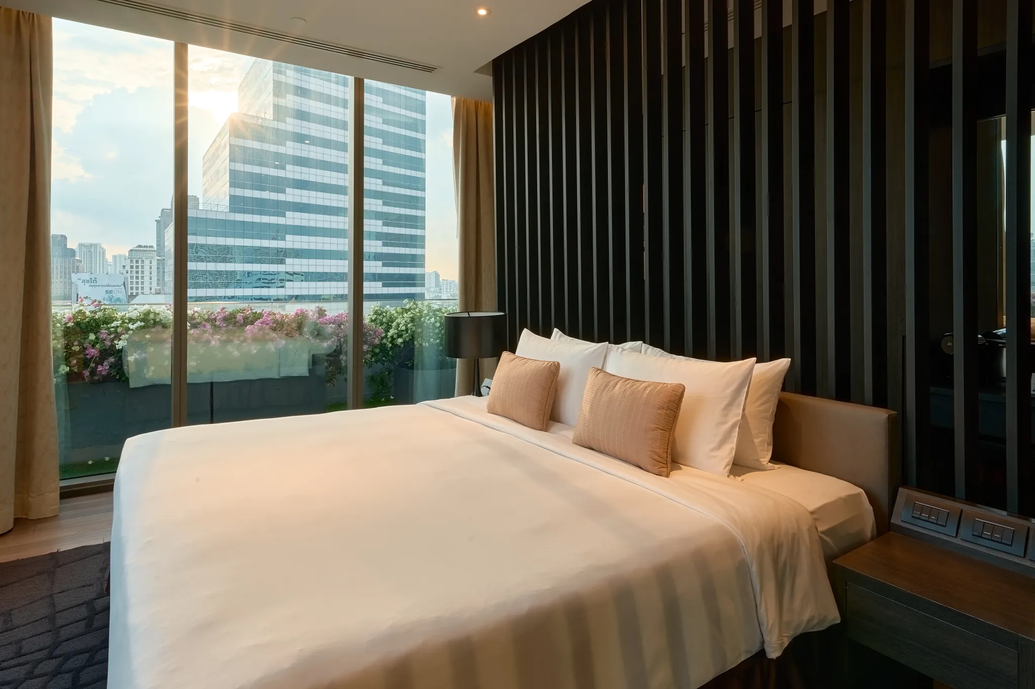 Genießen Sie von unserer Suite aus einen atemberaubenden Blick auf das berühmte Mahanakhon-Gebäude in Bangkok, das als höchstes Gebäude Thailands gilt.